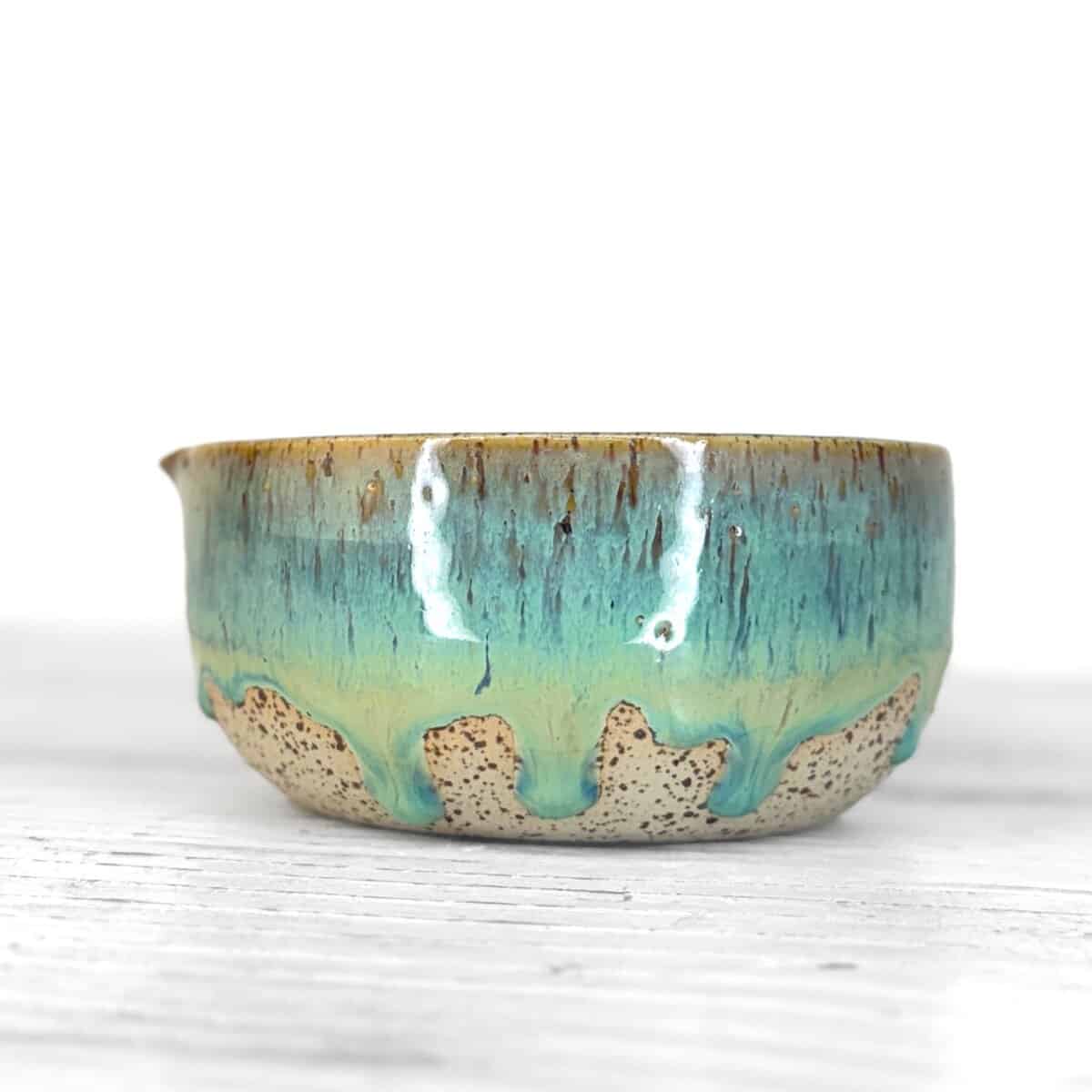 Tato matcha miska je ručně vytočená na hrnčířském kruhu z pigmentované kameniny a následně vypálená při vysokých teplotách v elektrické peci. Každý kus vzniká samostatně, bez použití forem, a proto se jednotlivé misky mohou lišit v tvaru, tloušťce stěny i celkovém výrazu.