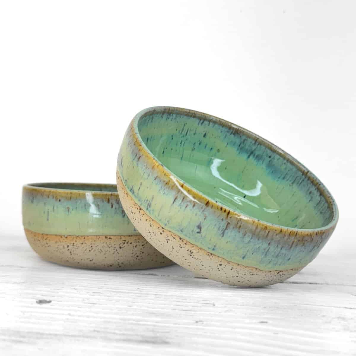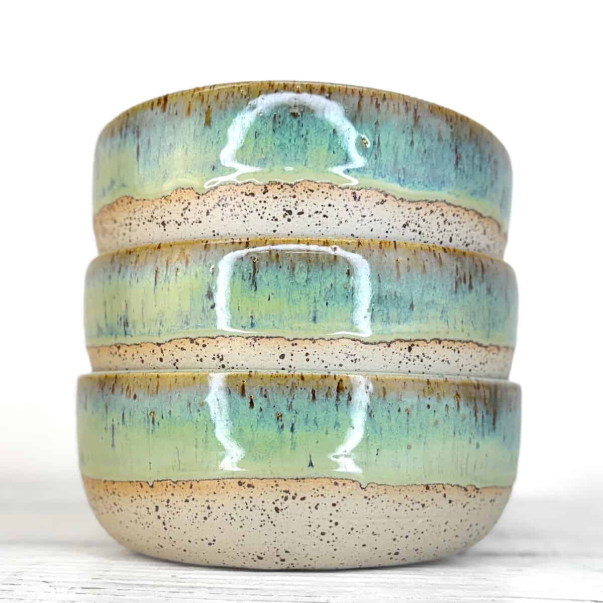 Povrch misky tvoří stékaná glazura, která se při každém výpalu chová trochu jinak. Někdy stéká výrazněji, jindy jemněji. Tyto rozdíly nejsou vadou, ale přirozeným výsledkem ruční práce a dělají z každé misky originál.
