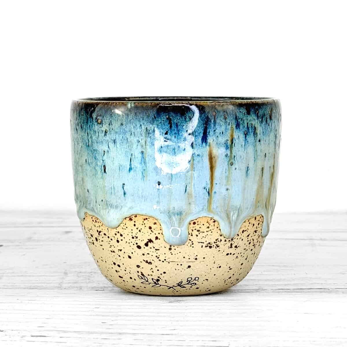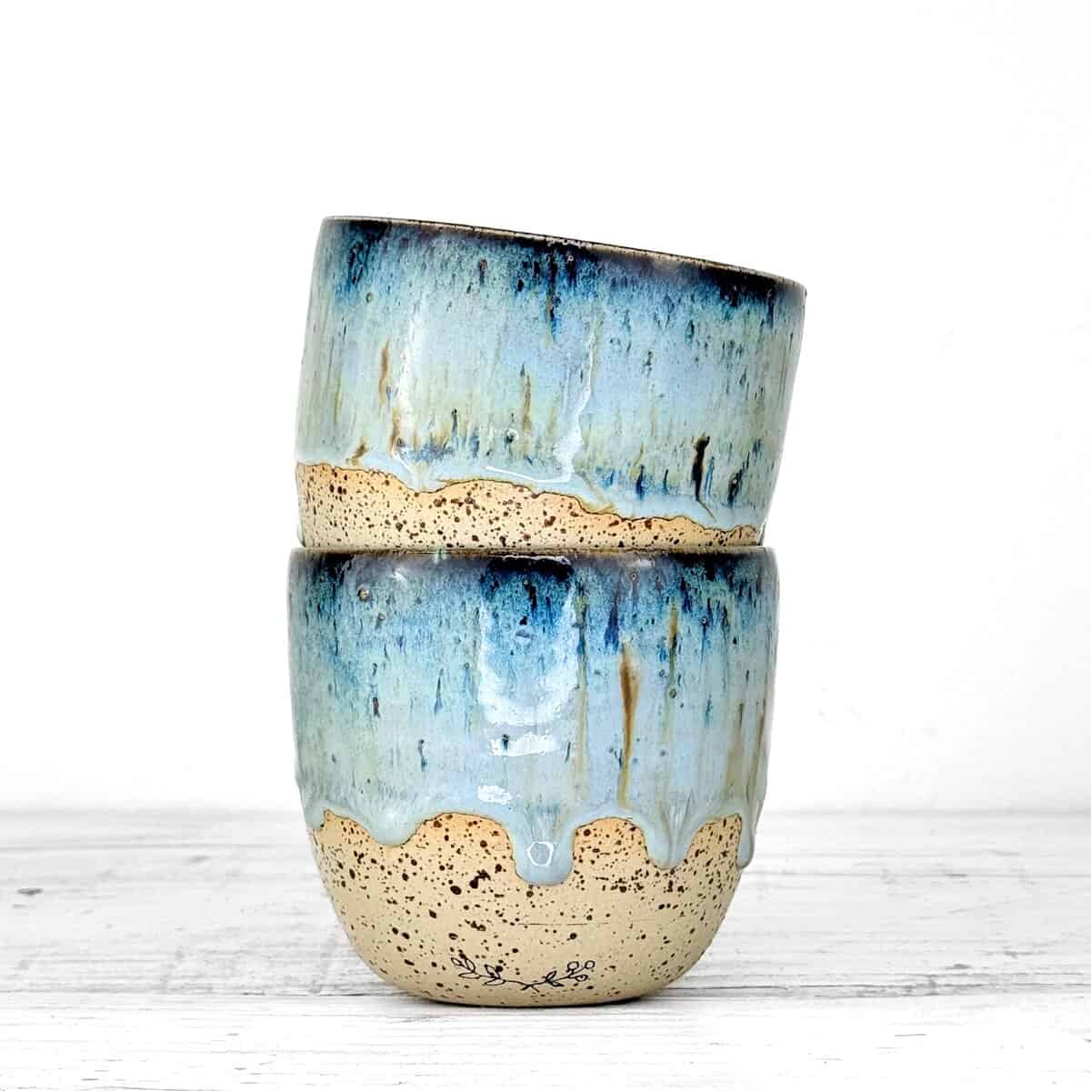 Tento kalíšek je ručně vytočen na hrnčířském kruhu z kvalitní pigmentované kameniny a následně vypálen při vysokých teplotách v elektrické peci. Jemné odchylky v objemu, měřeném až po plný okraj, slouží jako orientační hodnota.
