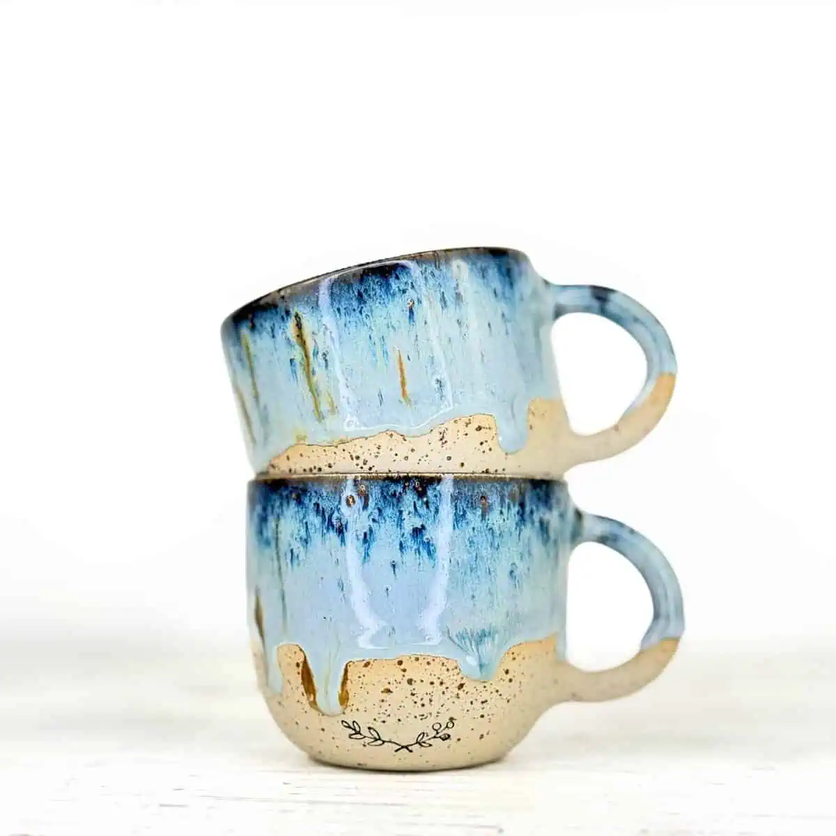 Tento hrníček je ručně vytočen na hrnčířském kruhu z kvalitní pigmentované kameniny a následně vypálen při vysokých teplotách v elektrické peci. Jemné odchylky v objemu, měřeném až po plný okraj, slouží jako orientační hodnota.