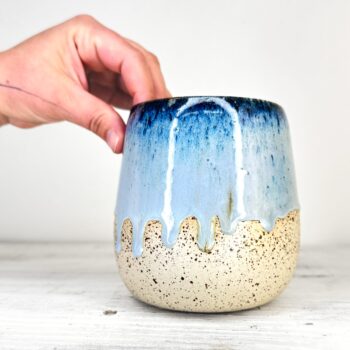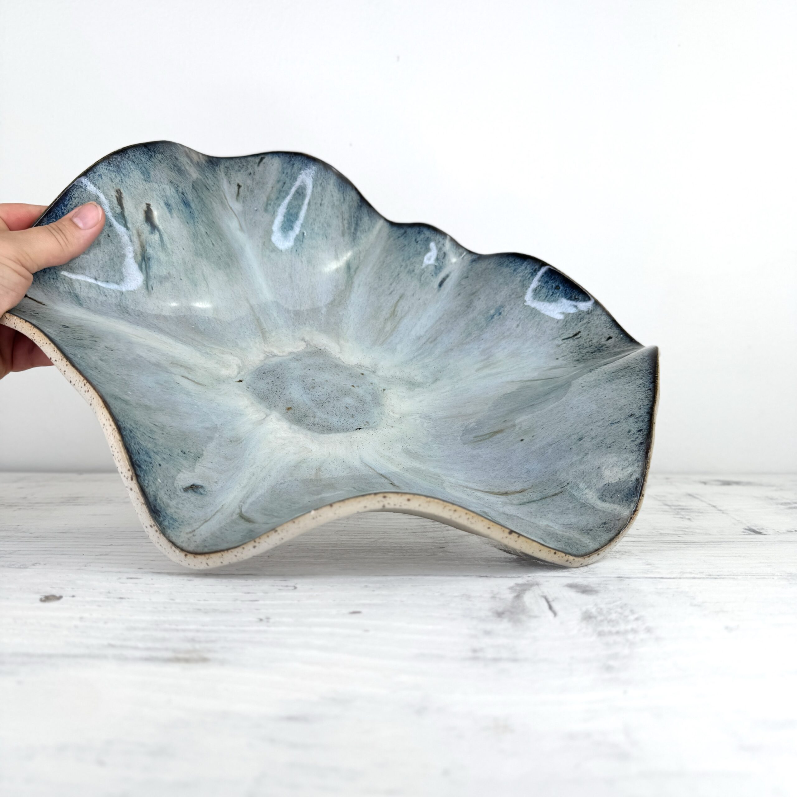 Povrch mísy tvoří glazura, která se při každém výpalu chová trochu jinak. Někdy stéká výrazněji, jindy jemněji. Tyto rozdíly nejsou vadou, ale přirozeným výsledkem ruční práce a dělají z každé mísy originál.