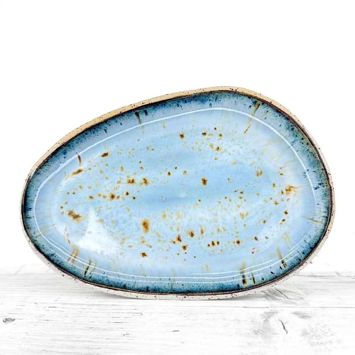 Délka talíře je cca 25,5cm a šířka cca 17cm (v nejširší části). Tento talíř je s láskou ručně modelován z kvalitní pigmentované kameniny a poté vypálen při vysokých teplotách v elektrické peci. Tento způsob výroby zajišťuje vysokou odolnost a umožňuje mytí v myčce nádobí. Každý talíř je unikátní, a proto se rozměry mohou lehce lišit a slouží pouze jako orientační hodnota.