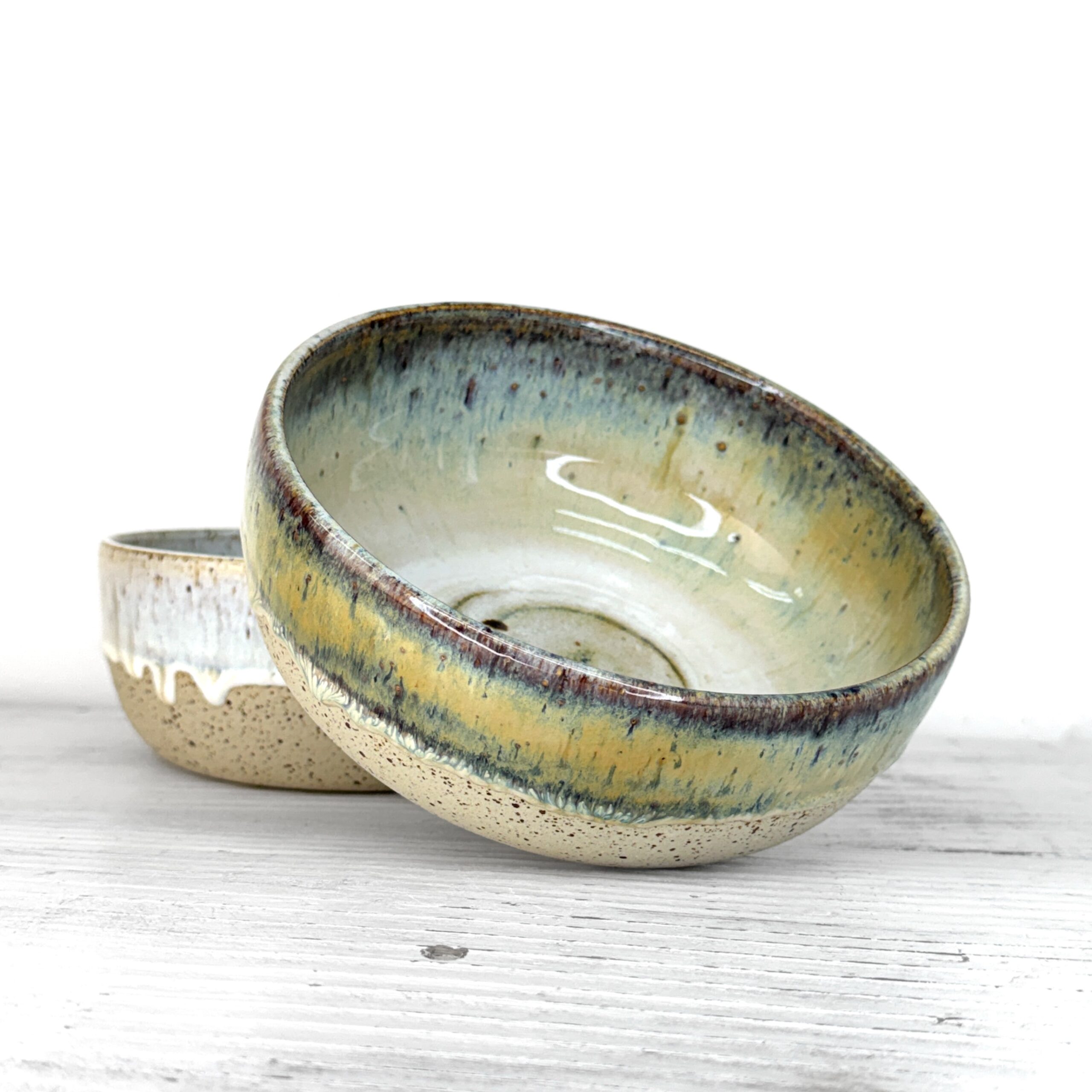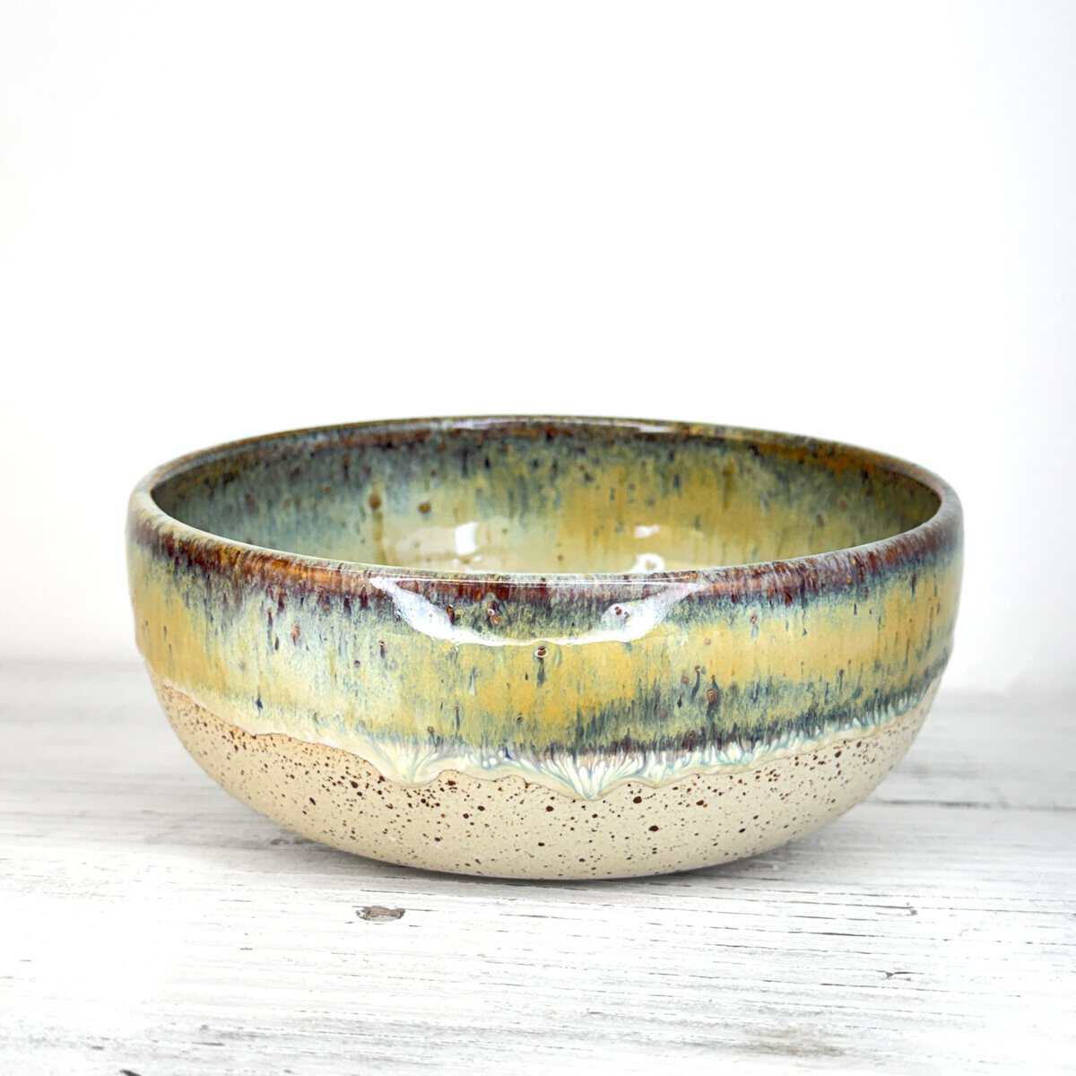 Povrch misky tvoří stékaná glazura, která se při každém výpalu chová trochu jinak. Někdy stéká výrazněji, jindy jemněji. Tyto rozdíly nejsou vadou, ale přirozeným výsledkem ruční práce a dělají z každé misky originál.
