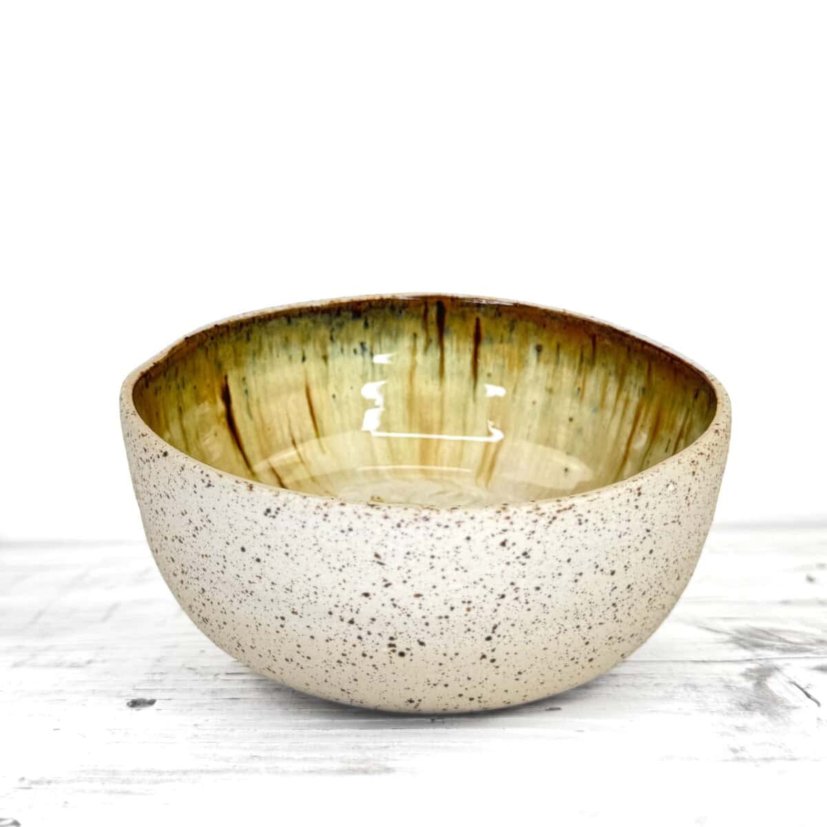 Velikost misky je cca 18cm šířka (v nejširší části) a 7,5cm výška. Tato miska je s láskou ručně vytočena na hrnčířském kruhu z kvalitní pigmentované kameniny a poté ručně tvarována do organického tvaru, následně vypálena při vysokých teplotách v elektrické peci. Tento způsob výroby zajišťuje vysokou odolnost a umožňuje mytí v myčce nádobí. Každá miska je unikátní, a proto se objem i rozměry mohou lehce lišit a slouží pouze jako orientační hodnota.