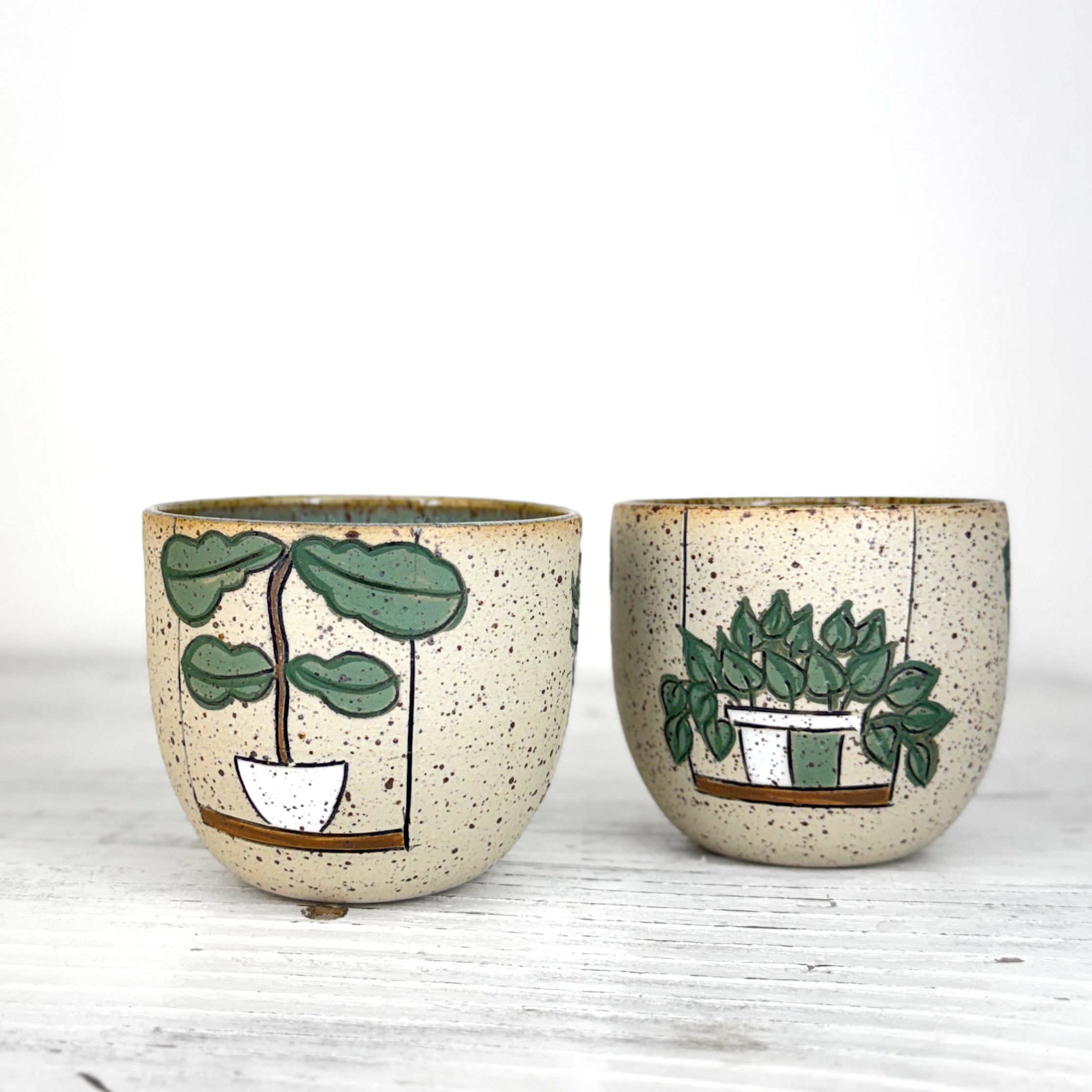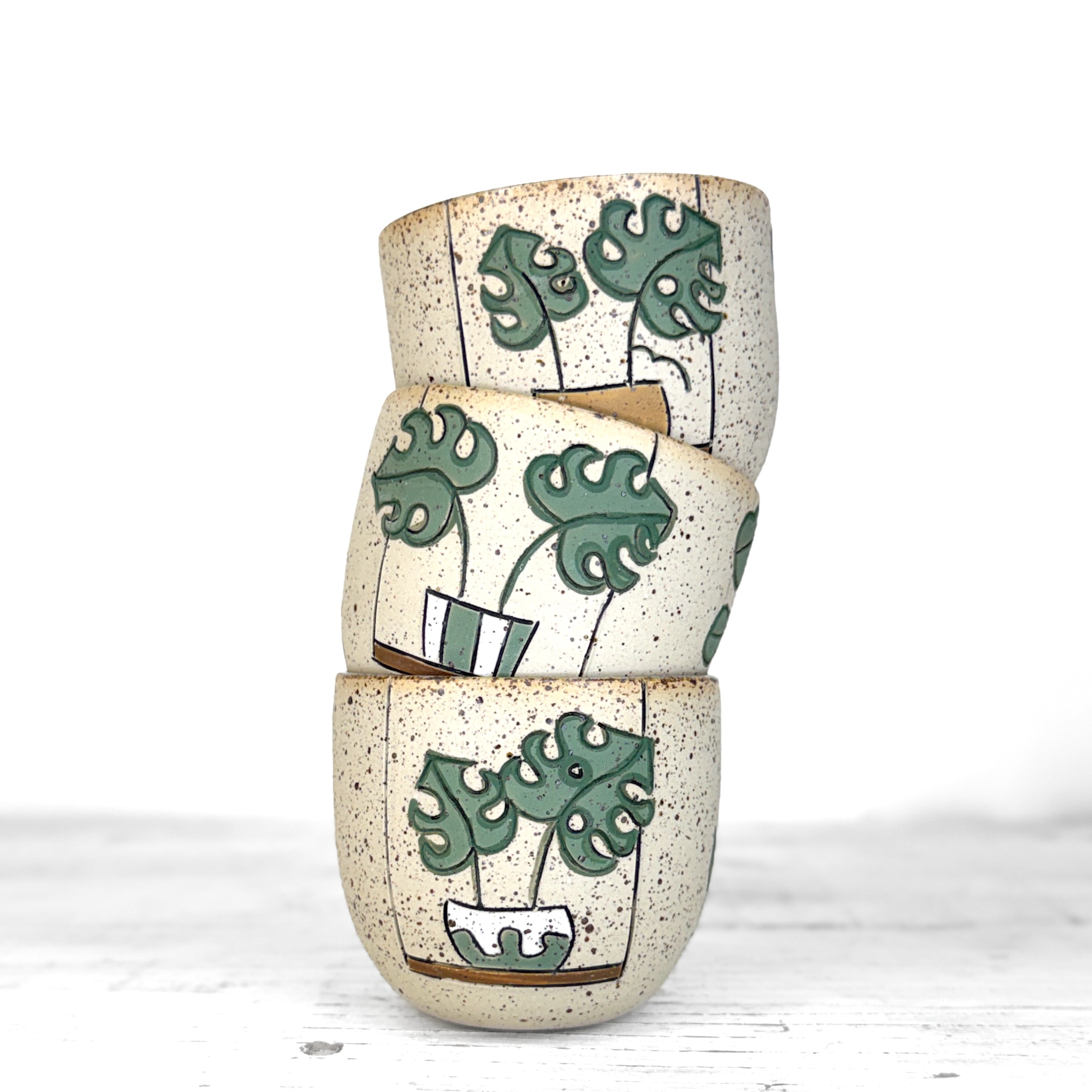 Tento kalíšek je ručně vytočený na hrnčířském kruhu z pigmentované kameniny a vypalovaný při vysokých teplotách v elektrické peci. Jemné odchylky v tvaru a rozměrech jsou přirozeným výsledkem ruční výroby.