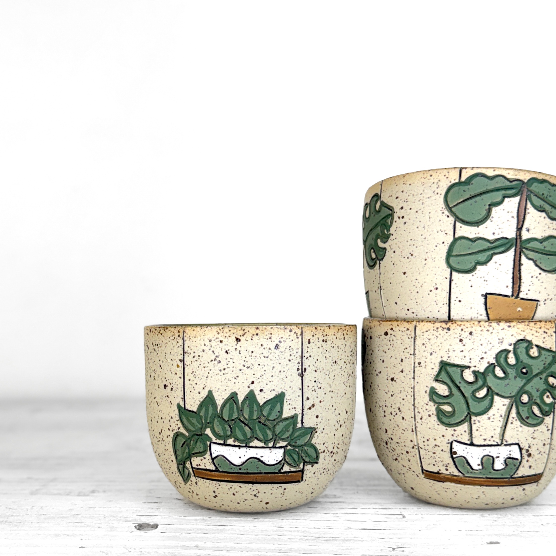 Motiv je ručně kreslený bez použití šablon, takže se jednotlivé kusy liší v detailech kresby i celkovém výrazu. Každý kalíšek je originál.