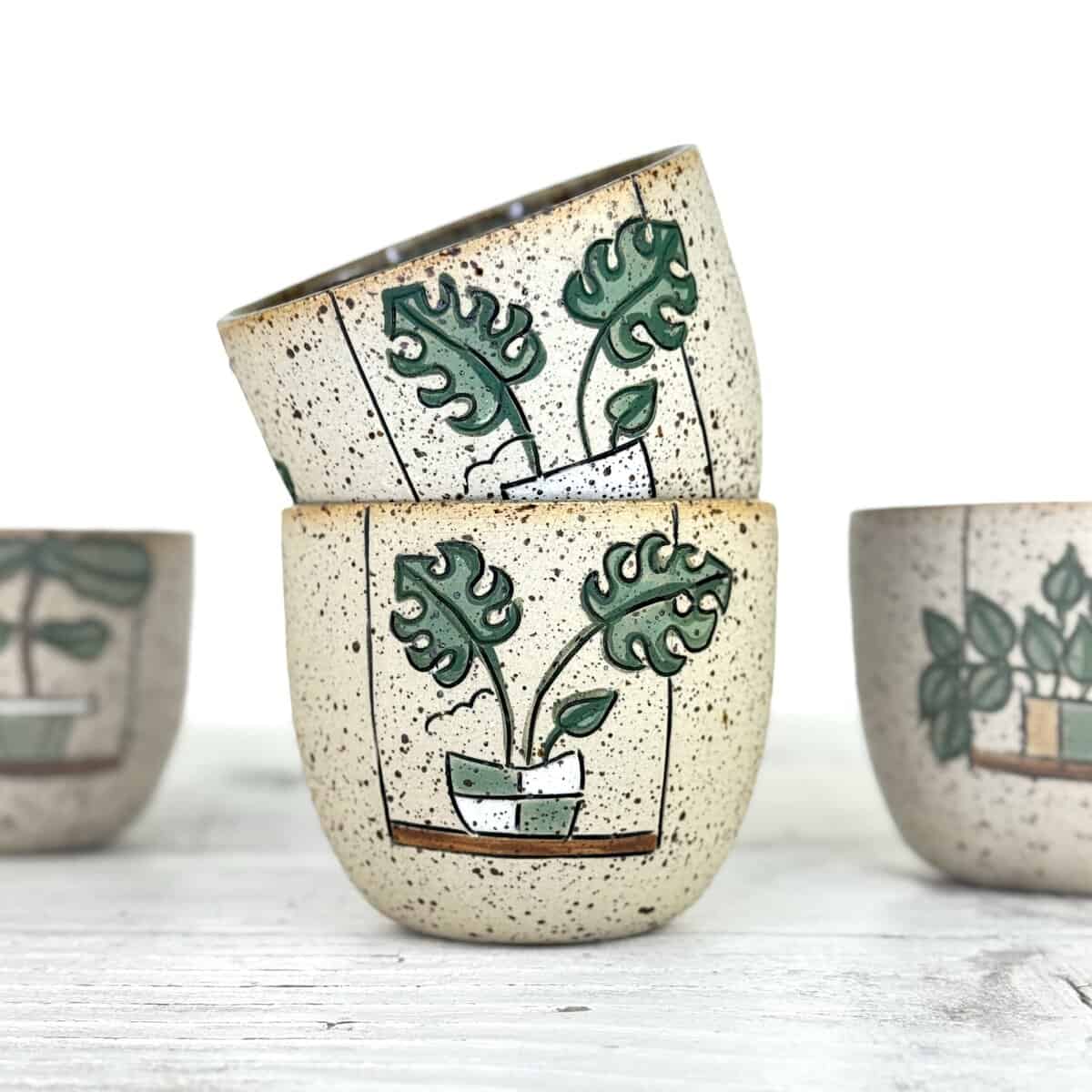 Tento kalíšek je ručně vytočen na hrnčířském kruhu z kvalitní pigmentované kameniny a následně vypálen při vysokých teplotách v elektrické peci. Jemné odchylky v objemu, měřeném až po plný okraj, slouží jako orientační hodnota.