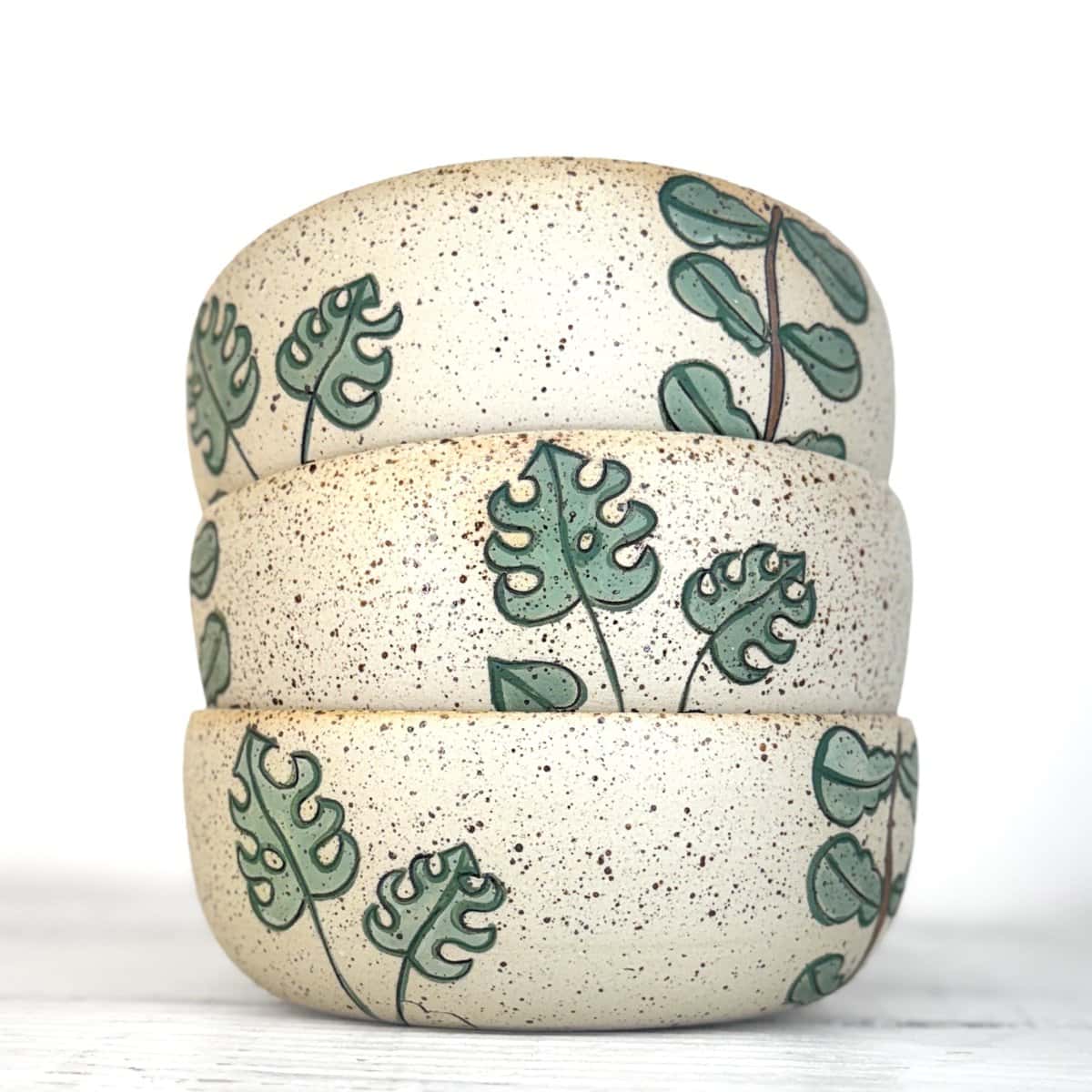 Motiv rostlin je malovaný volnou rukou a nikdy nevznikne dvakrát stejně. Odchylky v lince, tloušťce kresby nebo rozmístění motivu nejsou vadou, ale přirozeným výsledkem ruční práce.