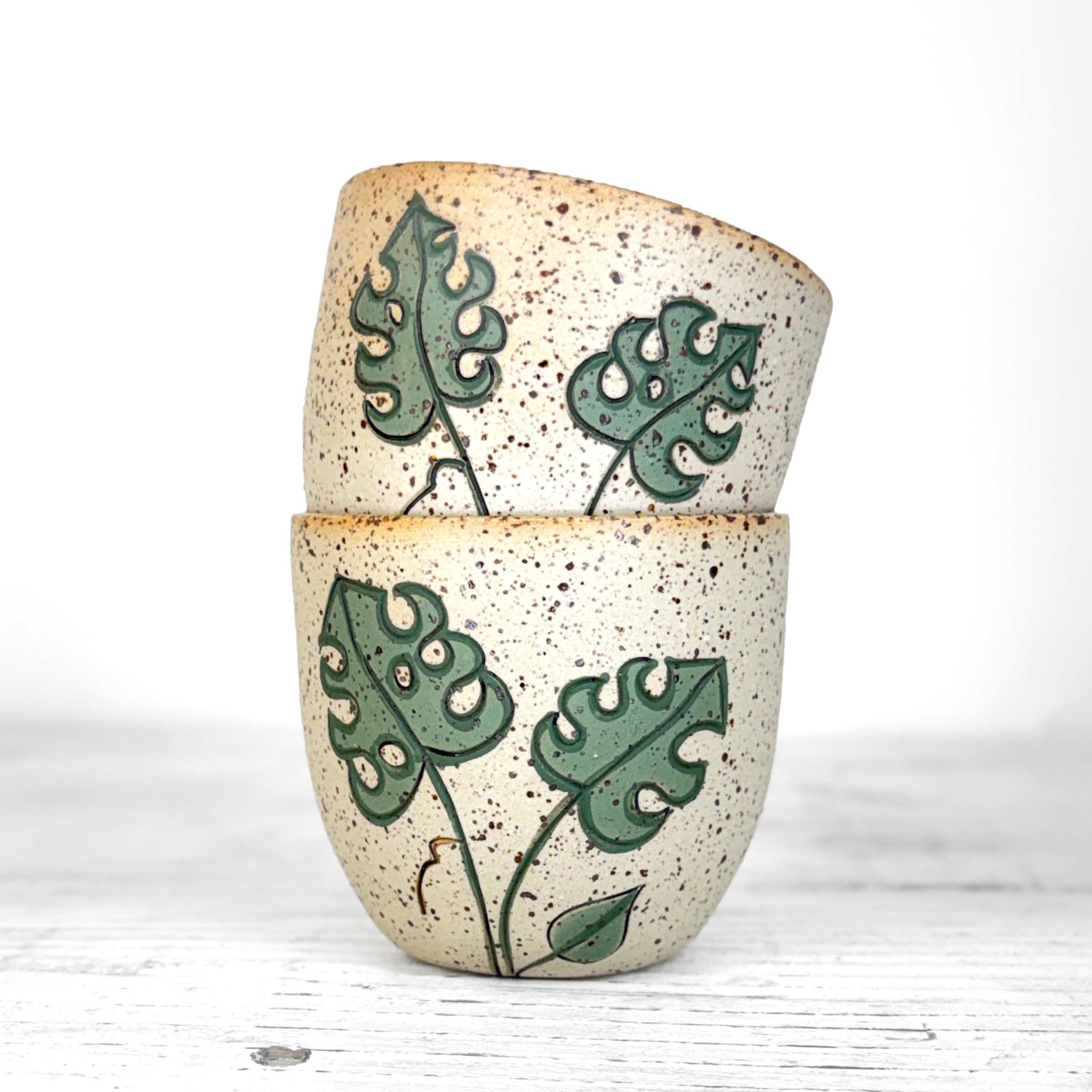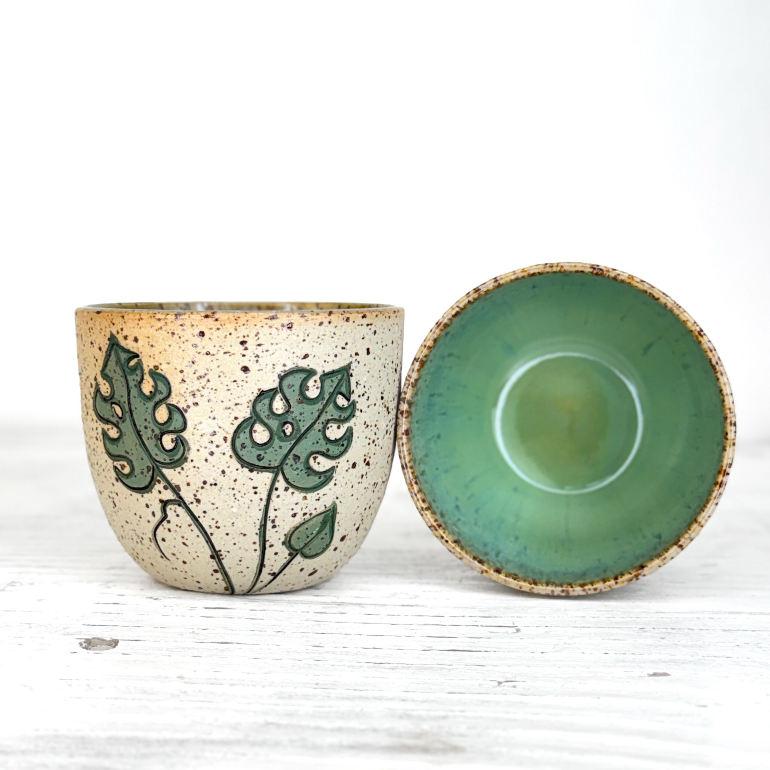Tento kalíšek je ručně vytočený na hrnčířském kruhu z pigmentované kameniny a vypalovaný při vysokých teplotách v elektrické peci. Jemné odchylky v tvaru a rozměrech jsou přirozeným výsledkem ruční výroby.