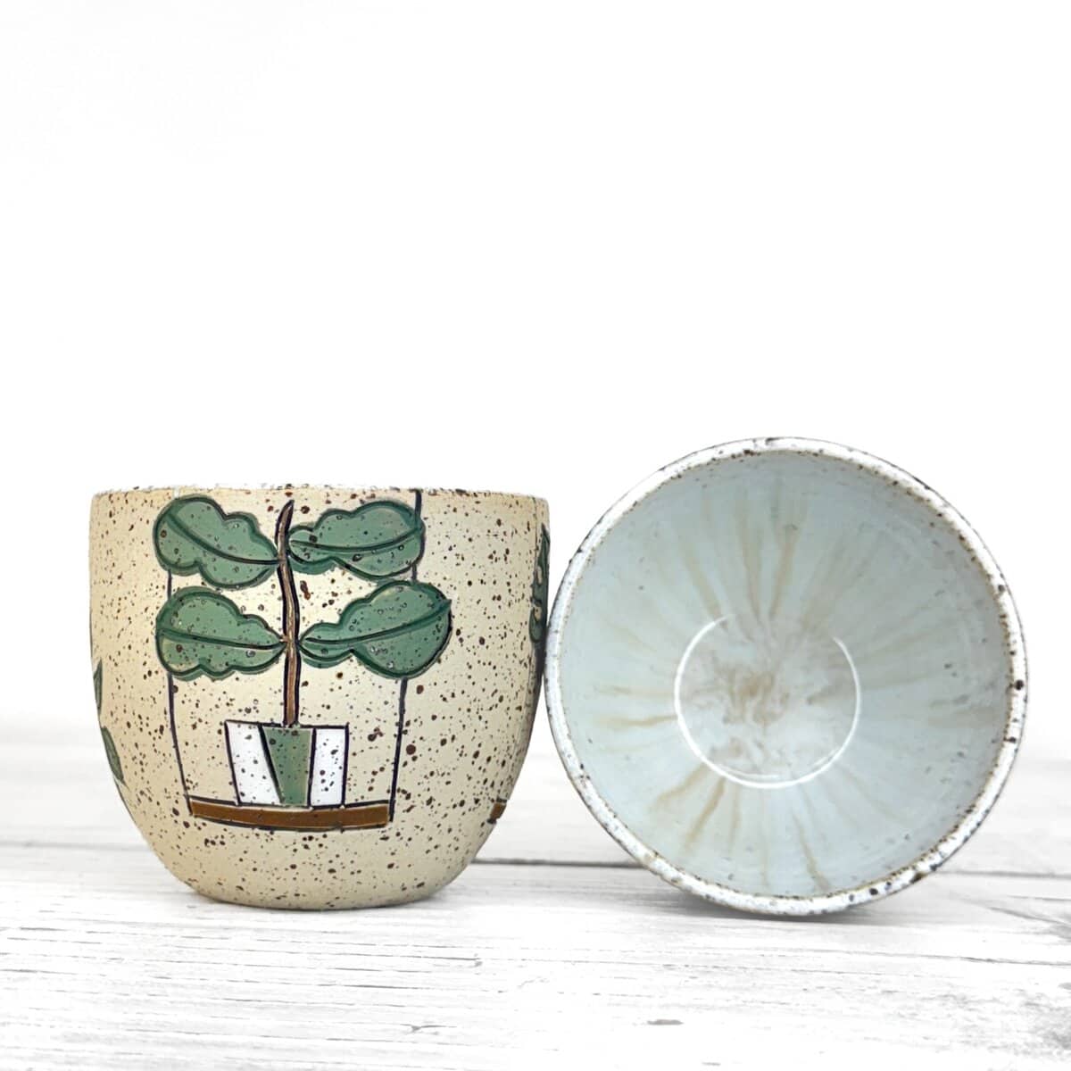 Tento kalíšek je ručně vytočený na hrnčířském kruhu z pigmentované kameniny a vypalovaný při vysokých teplotách v elektrické peci. Jemné odchylky v tvaru a rozměrech jsou přirozeným výsledkem ruční výroby.