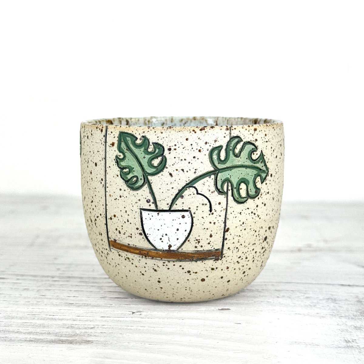 Tento kalíšek je ručně vytočen na hrnčířském kruhu z kvalitní pigmentované kameniny a následně vypálen při vysokých teplotách v elektrické peci. Jemné odchylky v objemu, měřeném až po plný okraj, slouží jako orientační hodnota.