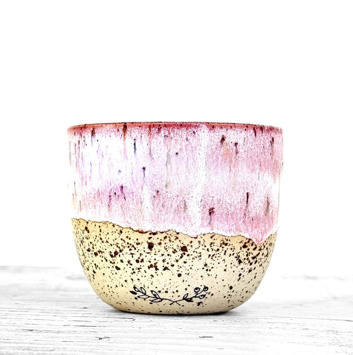 Tento kalíšek je ručně vytočen na hrnčířském kruhu z kvalitní pigmentované kameniny a následně vypálen při vysokých teplotách v elektrické peci. Jemné odchylky v objemu, měřeném až po plný okraj, slouží jako orientační hodnota.