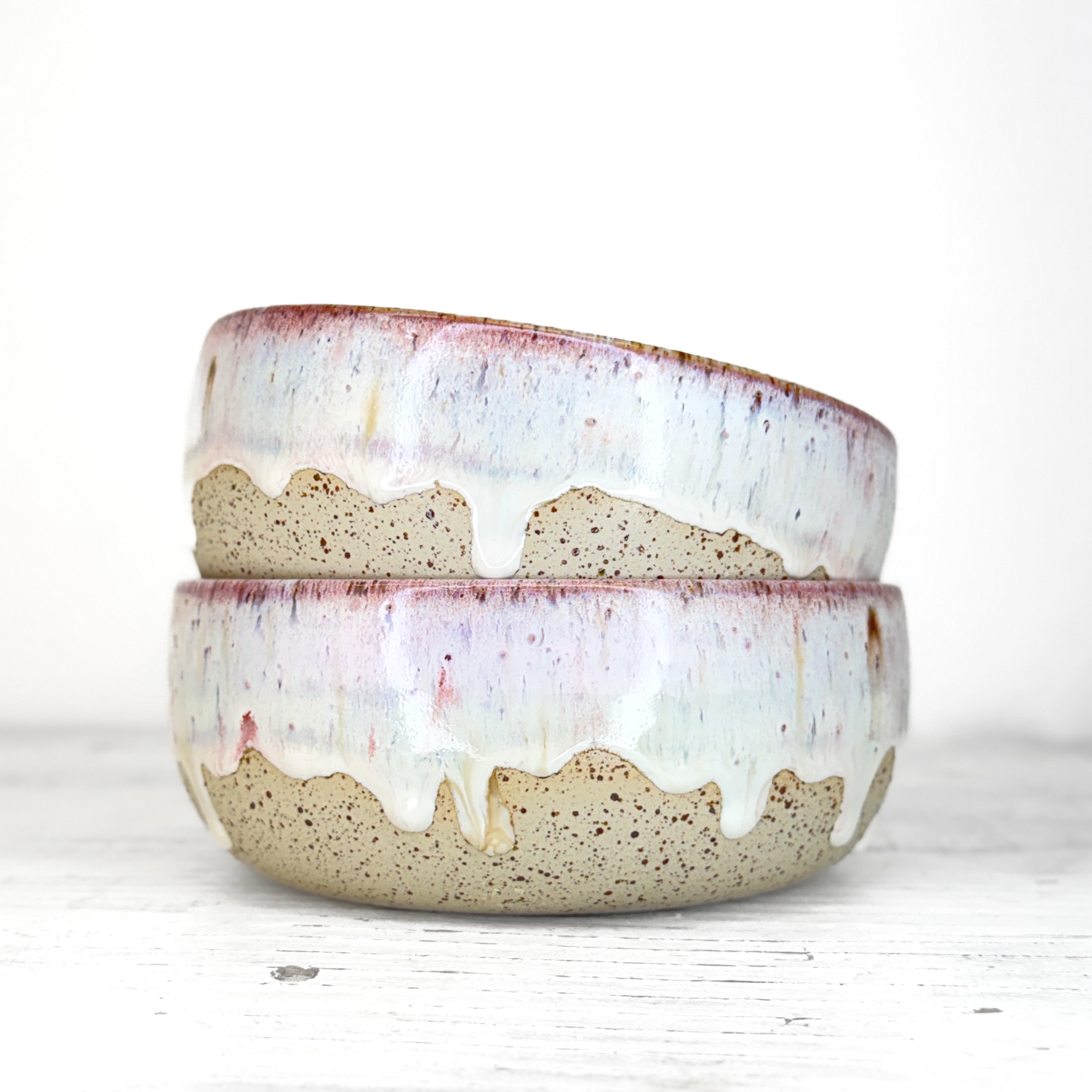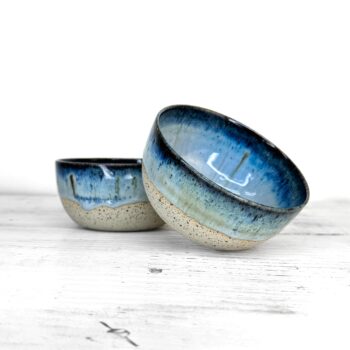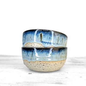 Povrch misky tvoří stékaná glazura, která se při každém výpalu chová trochu jinak. Někdy stéká výrazněji, jindy jemněji. Tyto rozdíly nejsou vadou, ale přirozeným výsledkem ruční práce a dělají z každé misky originál.