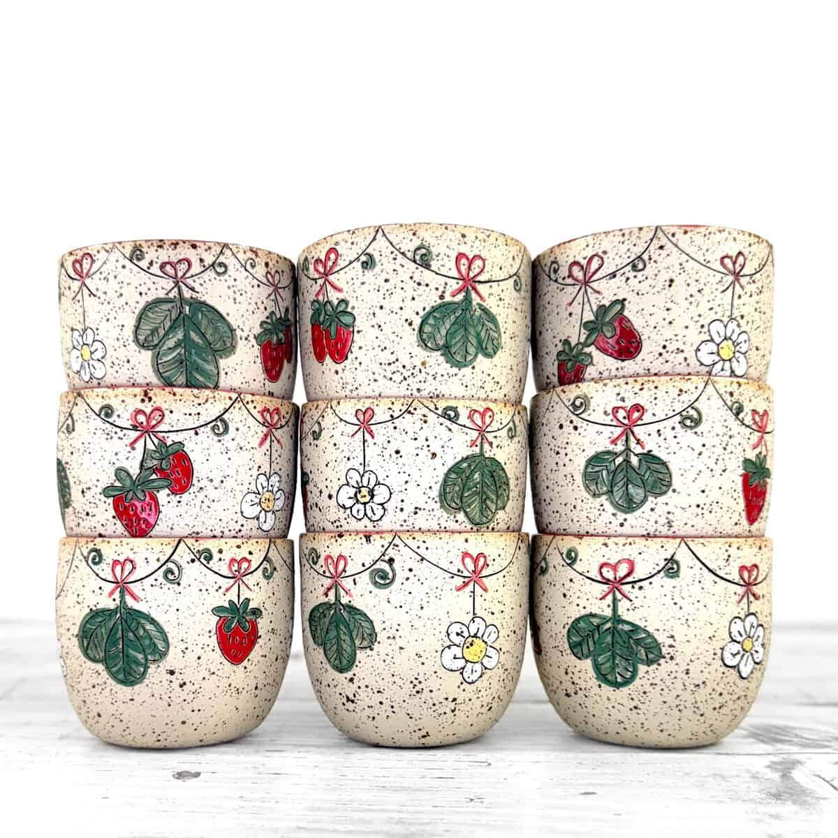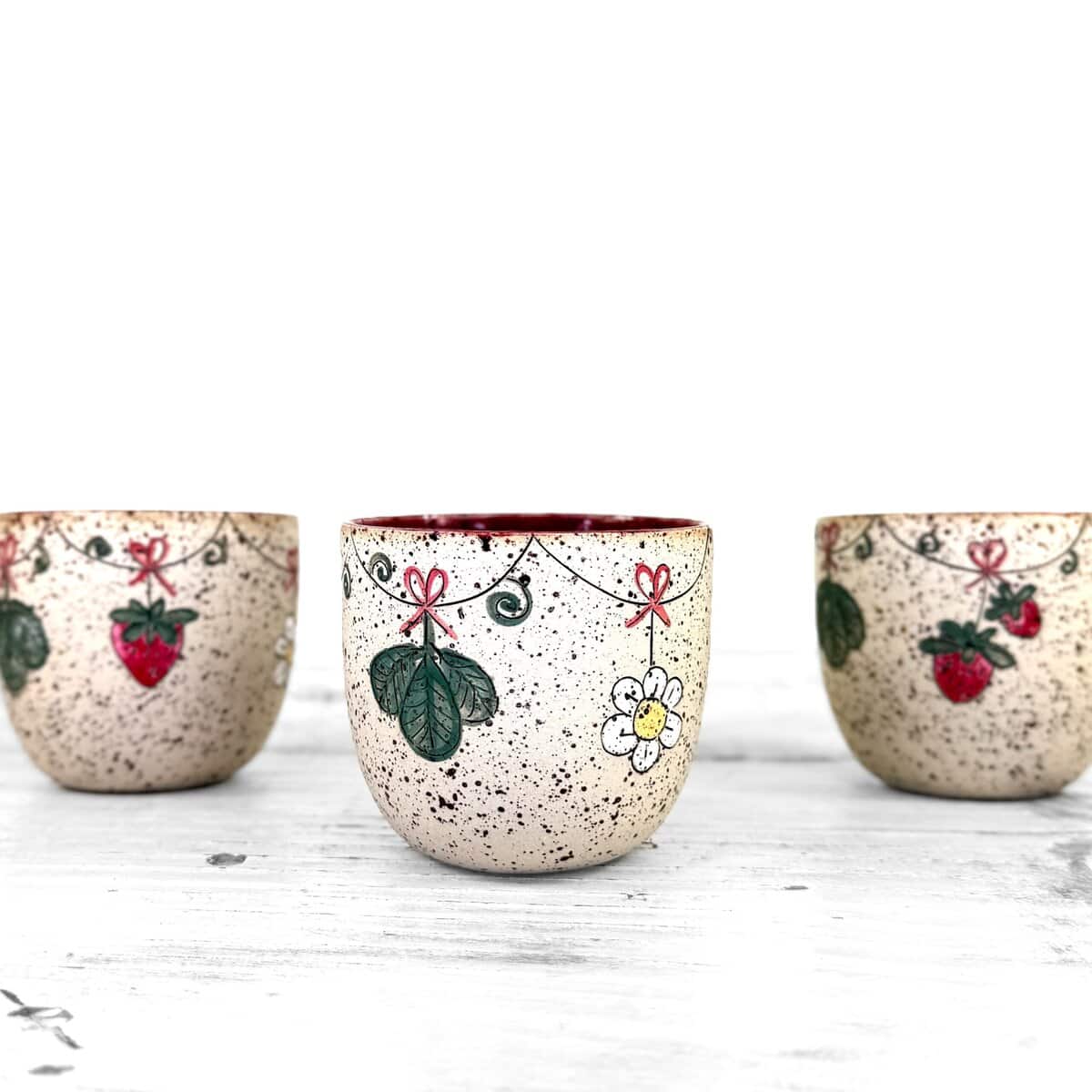 Tento kalíšek je ručně vytočen na hrnčířském kruhu z kvalitní pigmentované kameniny a následně vypálen při vysokých teplotách v elektrické peci. Jemné odchylky v objemu, měřeném až po plný okraj, slouží jako orientační hodnota.