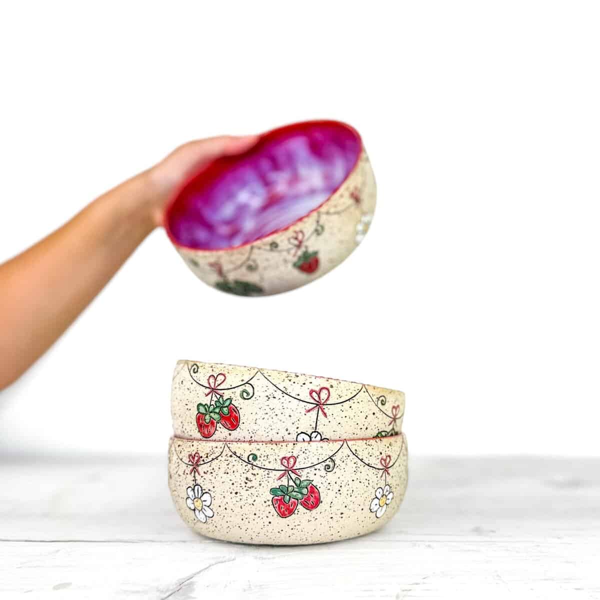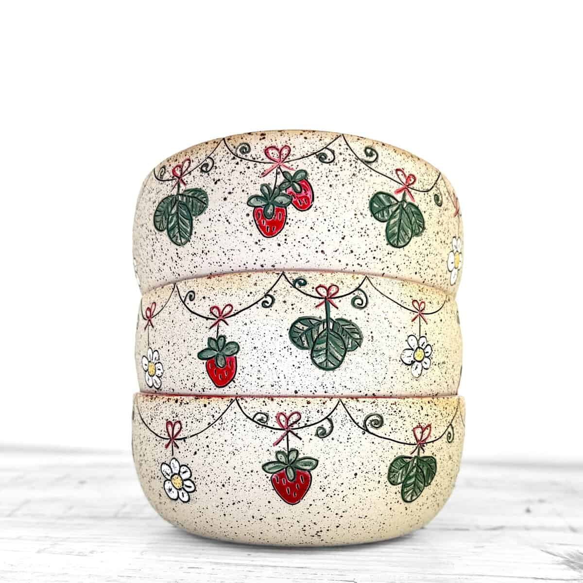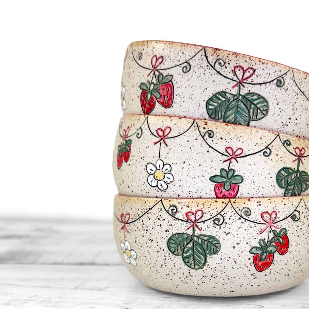 Velikost misky je cca 16cm šířka a 6cm výška. Tato miska je s láskou ručně vytočena na hrnčířském kruhu z kvalitní pigmentované kameniny a poté vypálena při vysokých teplotách v elektrické peci. Tento způsob výroby zajišťuje vysokou odolnost a umožňuje mytí v myčce nádobí. Každá miska je unikátní, a proto se objem i rozměry mohou lehce lišit a slouží pouze jako orientační hodnota.
