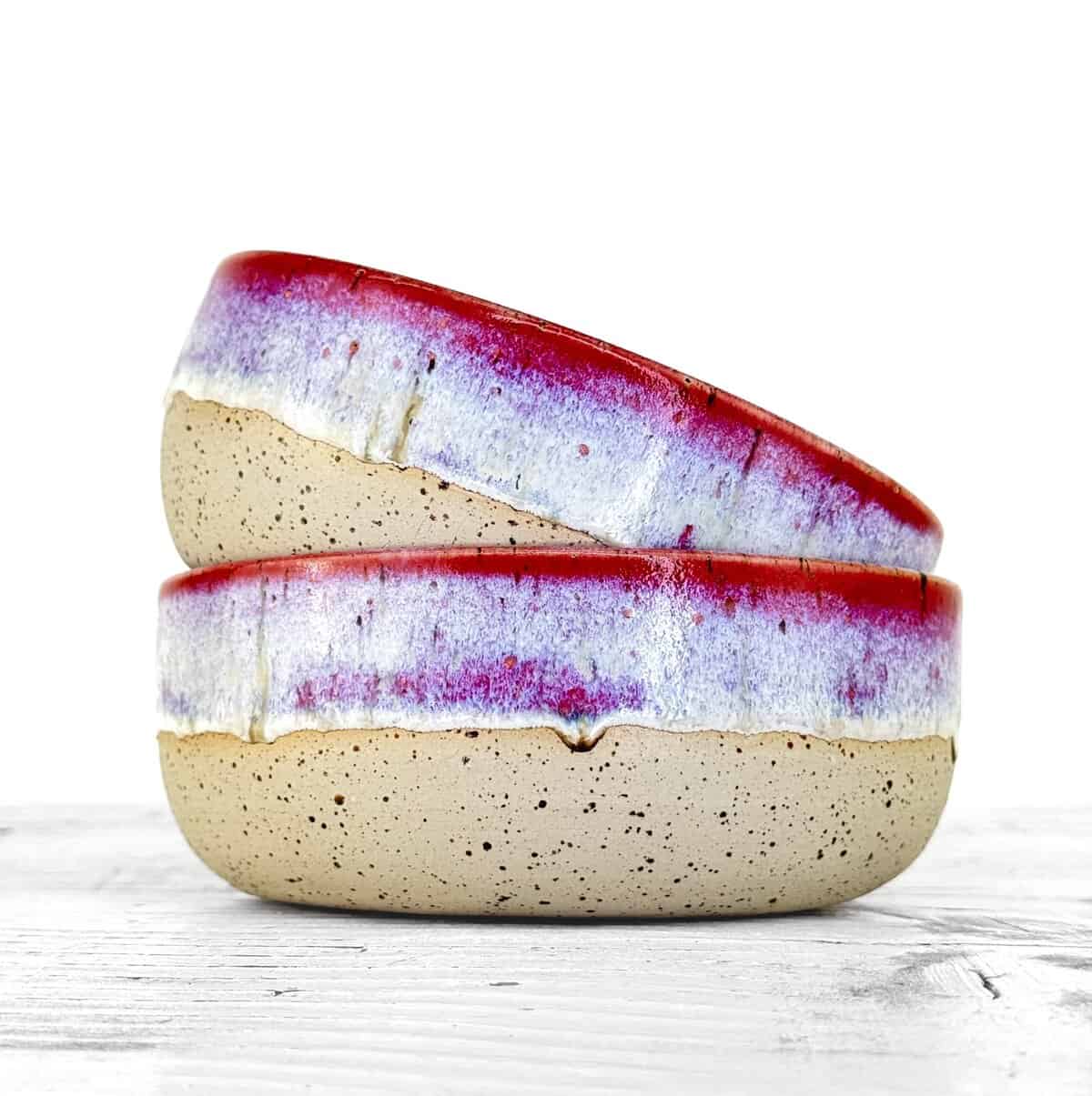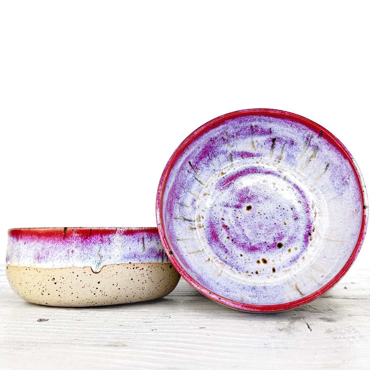 Velikost misky je cca 16cm šířka a 6cm výška. Tato miska je s láskou ručně vytočena na hrnčířském kruhu z kvalitní pigmentované kameniny a poté vypálena při vysokých teplotách v elektrické peci. Tento způsob výroby zajišťuje vysokou odolnost a umožňuje mytí v myčce nádobí. Každá miska je unikátní, a proto se objem i rozměry mohou lehce lišit a slouží pouze jako orientační hodnota.