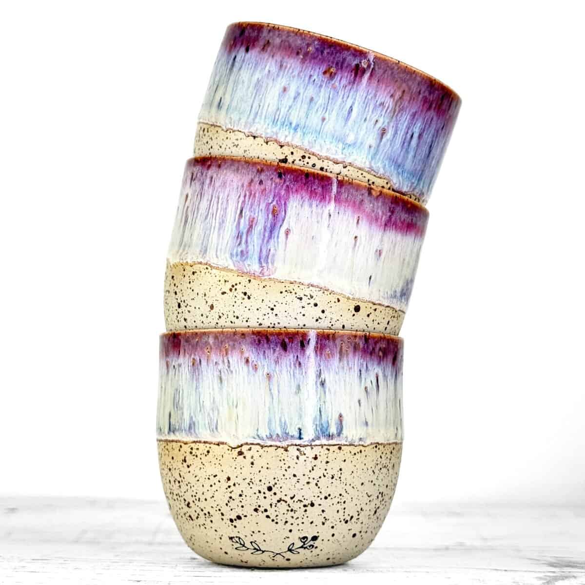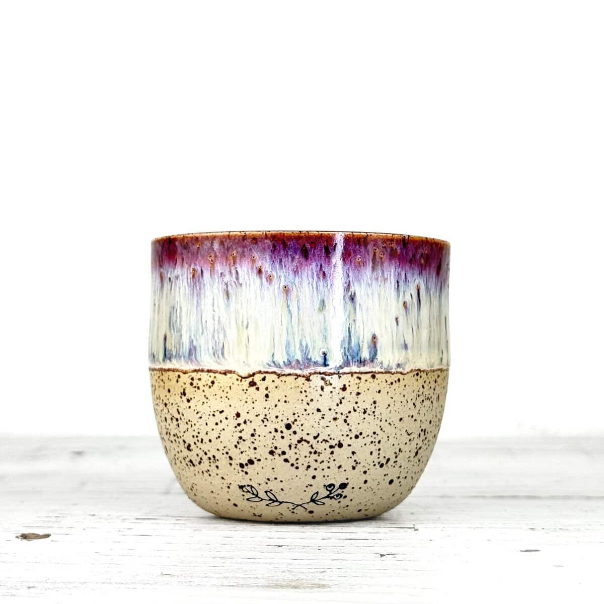 Tento kalíšek je ručně vytočen na hrnčířském kruhu z kvalitní pigmentované kameniny a následně vypálen při vysokých teplotách v elektrické peci. Jemné odchylky v objemu, měřeném až po plný okraj, slouží jako orientační hodnota.