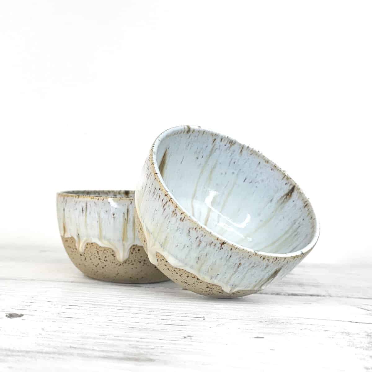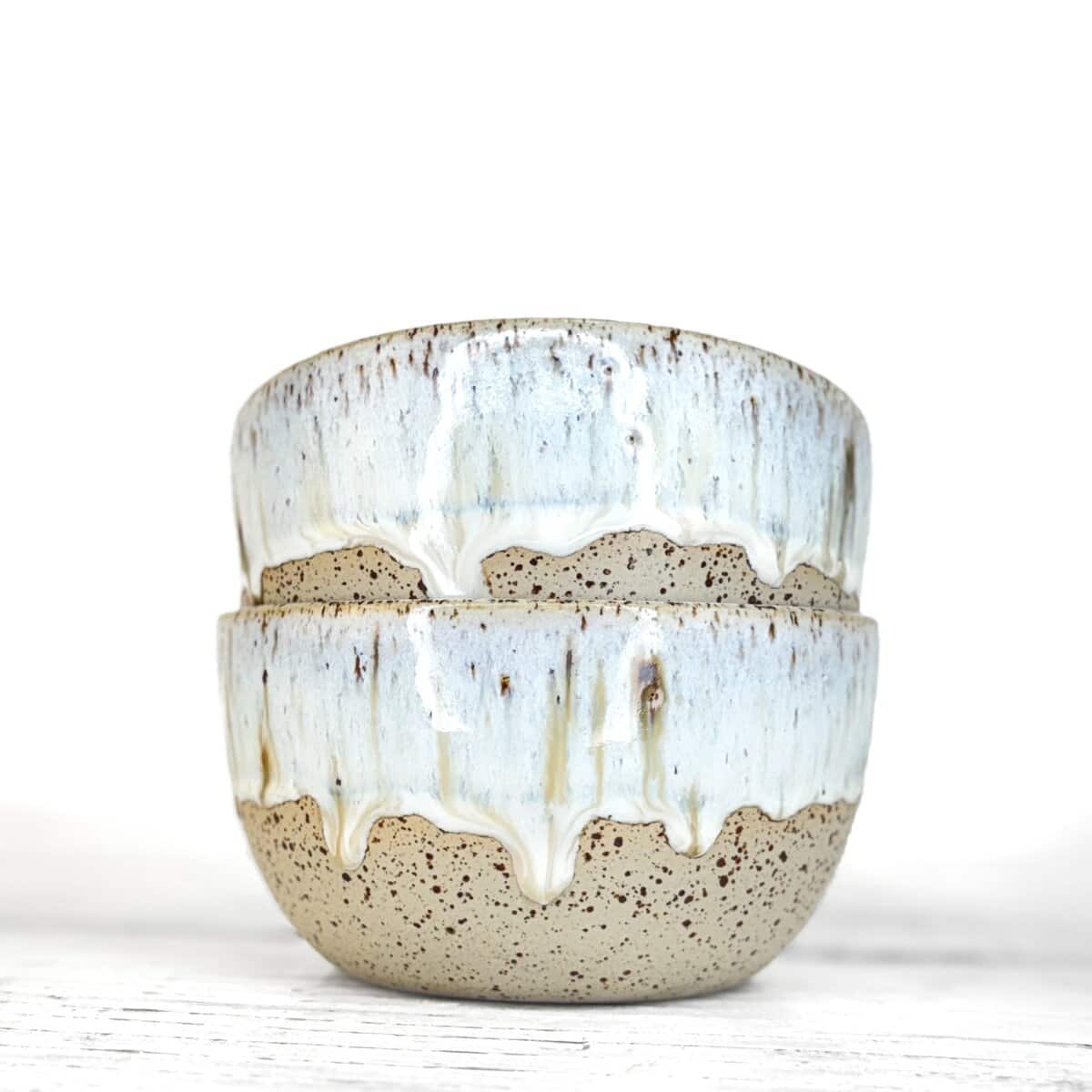 Povrch misky tvoří stékaná glazura, která se při každém výpalu chová trochu jinak. Někdy stéká výrazněji, jindy jemněji. Tyto rozdíly nejsou vadou, ale přirozeným výsledkem ruční práce a dělají z každé misky originál.