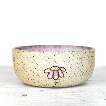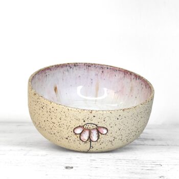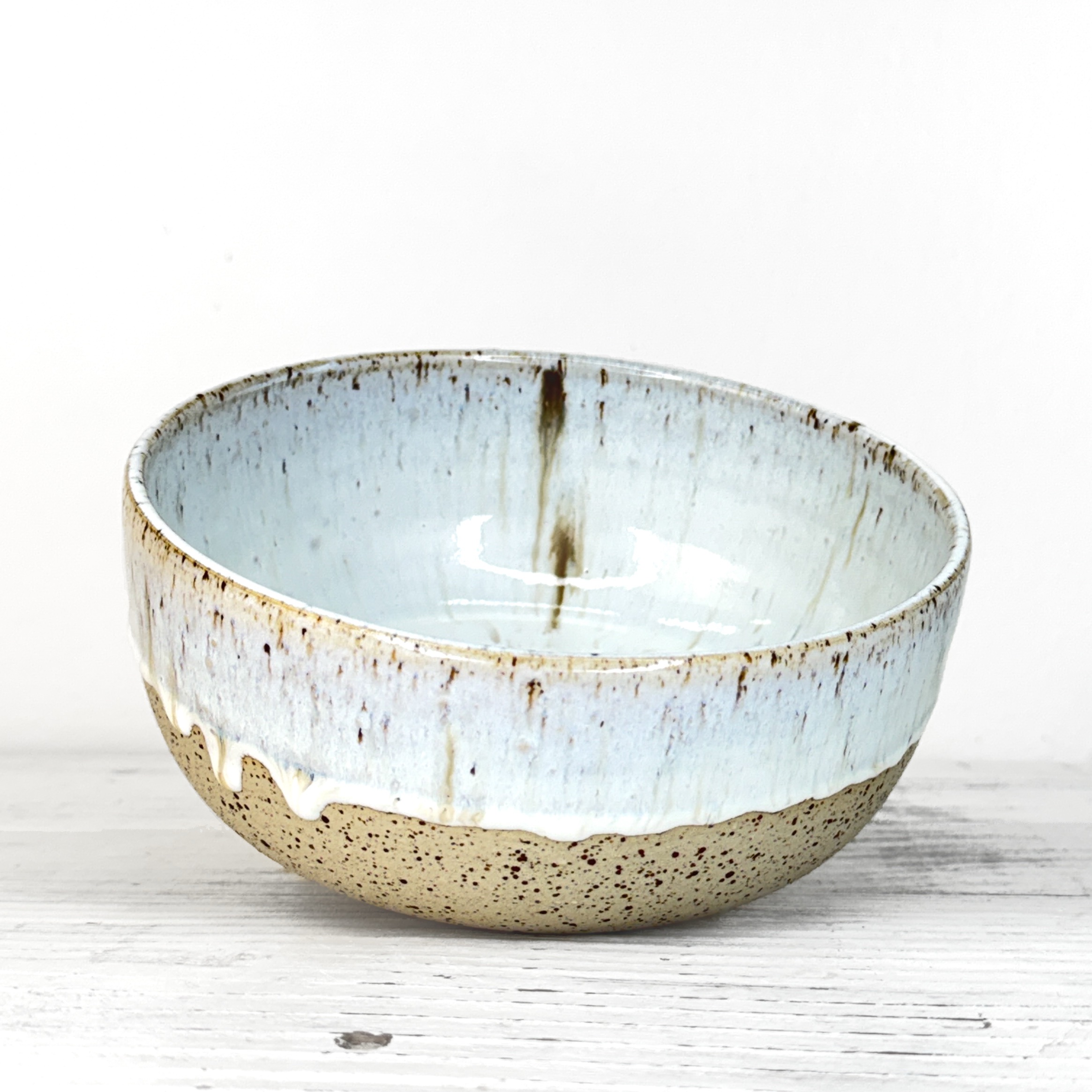Tato miska je ručně vytočená na hrnčířském kruhu z pigmentované kameniny a vypálená při vysokých teplotách v elektrické peci. Každý kus vzniká samostatně bez použití forem, proto se jednotlivé misky mohou mírně lišit v tvaru, tloušťce i celkovém výrazu.